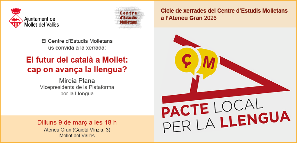 Invitació https://www.molletvalles.cat/ca/actualitat/agenda/xerrada-el-futur-del-catala-a-mollet-cap-a-on-avanca-la-llengua/xerrada-cem_09-03-2026-ok.png/@@download/image/Xerrada CEM_09.03.2026 ok.png