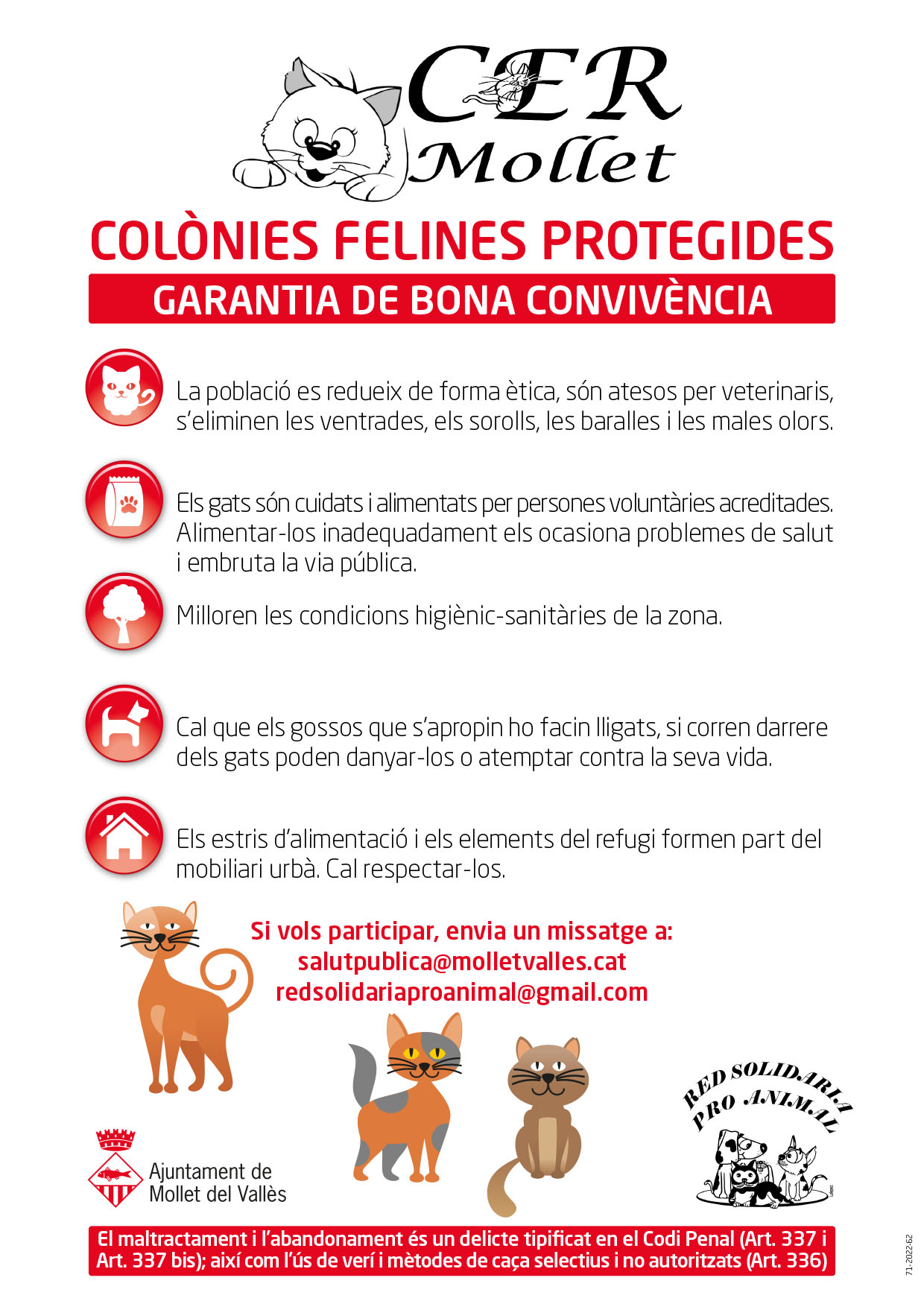 Colònies Felines, Garantia de bona convivènciahttps://www.molletvalles.cat/ca/serveis/benestar-animal/colonies-de-gats-de-carrer/71-2022-62-cartell-cer-ok.jpg/viewhttps://www.molletvalles.cat/ca/serveis/benestar-animal/colonies-de-gats-de-carrer/71-2022-62-cartell-cer-ok.jpg/@@download/file/71-2022-62 Cartell CER OK.JPG